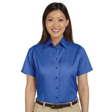 This 5.6oz jersey polo with SpotShield™ features side seams, four button placket and contoured fit. The fabric is 50% polyester and 50% cotton.