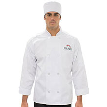 Casual full cut chef coat with 8 matching buttons. A basic twill coat with classic features.