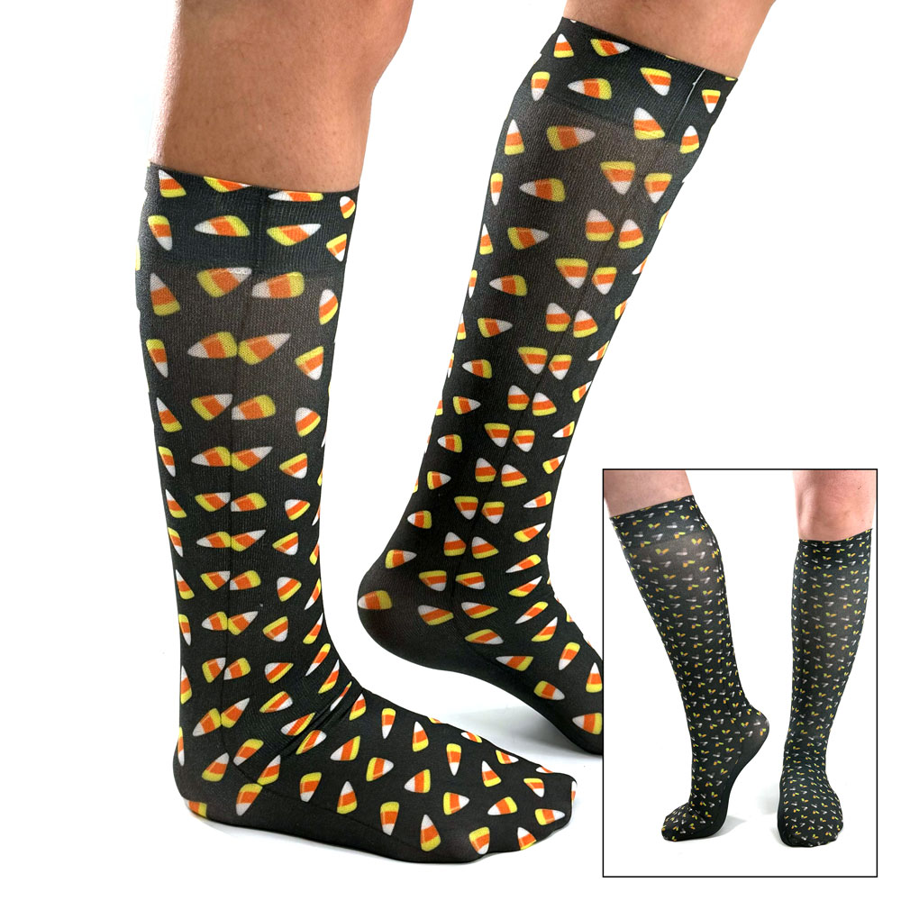 These compression socks are made of a knit Material for more of a traditional sock thickness. It features mmHg features 8-15 mmHg gradient compression that delivers controlled pressure from ankle to calf in order to promote better blood flow throughout the lower leg. Knit style, knee-length and closed-toe. Fabric content is 95/5 nylon/spandex. Latex-Free. One size fits most.