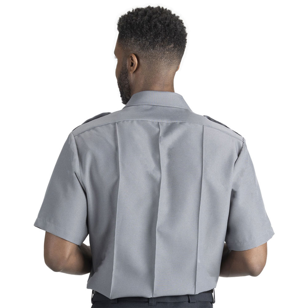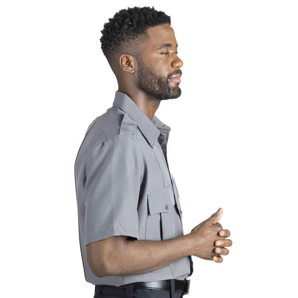Security short sleeve shirt. Durable and functional; this polyester shirt is a mainstay for any security program. This shirt stands up to demanding wear with six design features that respond to technical security requirements.