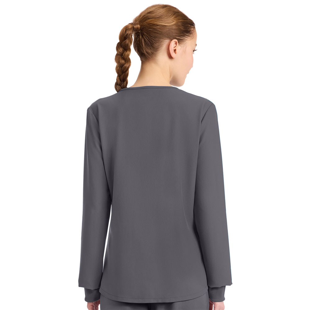 Take cover in an essential top that'll keep you comfy all day. With soft-knit cuffs, odor-fighting PROTX2 and handy front pockets, this versatile fave can be layered under scrubs or worn solo. A breathable v-neck makes it an anytime wardrobe winner.